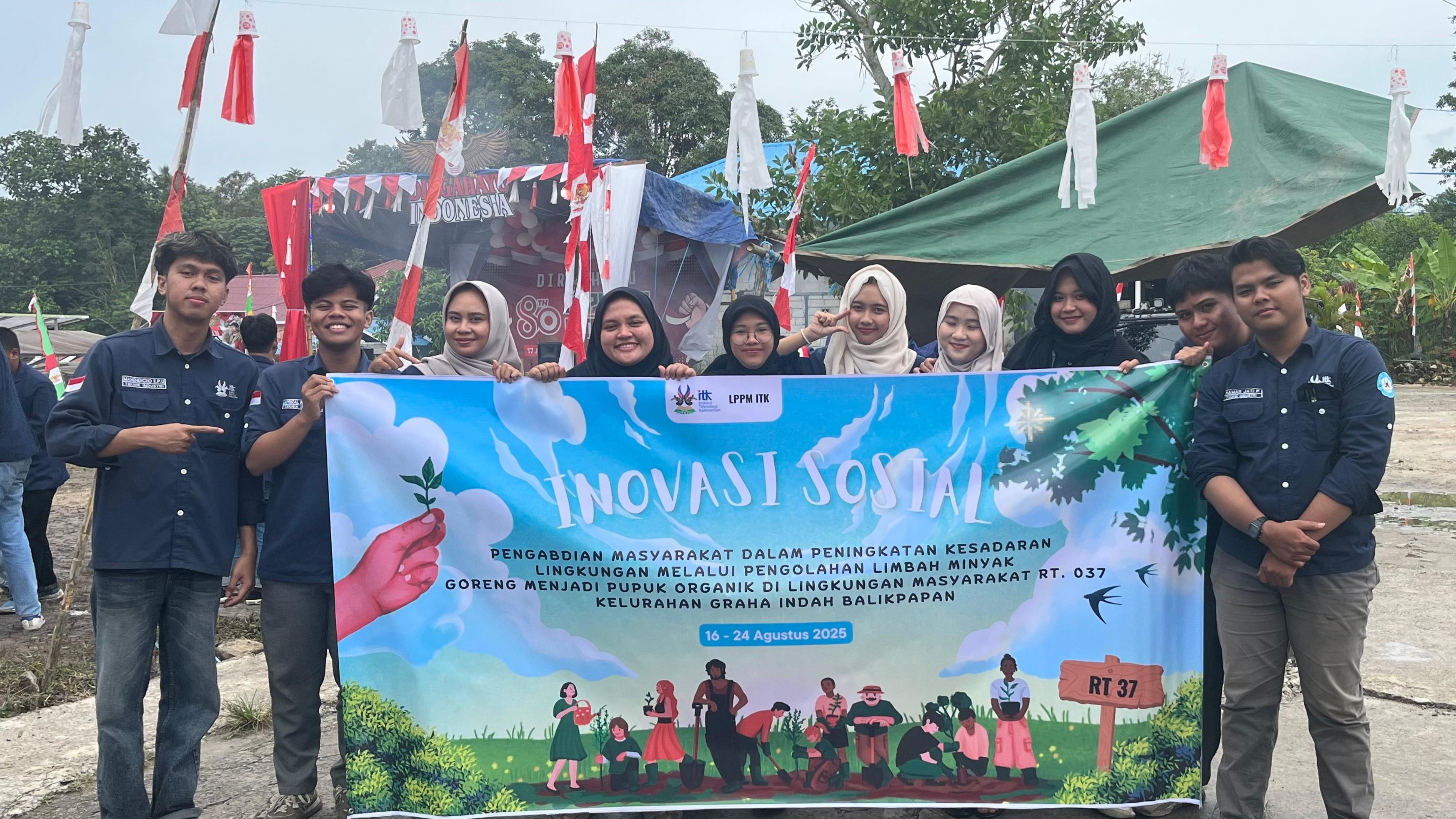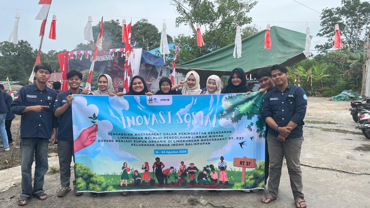 Balikpapan – Dalam semarak peringatan Hari Kemerdekaan Republik Indonesia ke-80, suasana di RT 37 Kelurahan Graha Indah, Balikpapan Utara, terasa berbeda. Bukan hanya karena lomba-lomba khas tujuh belasan, tetapi juga hadirnya tim dosen dan mahasiswa Institut Teknologi Kalimantan (ITK) yang membawa program pengabdian dan inovasi sosial mahasiswa “Pengelolaan dan Pengolahan Minyak Jelantah Menjadi Pupuk Organik Cair".